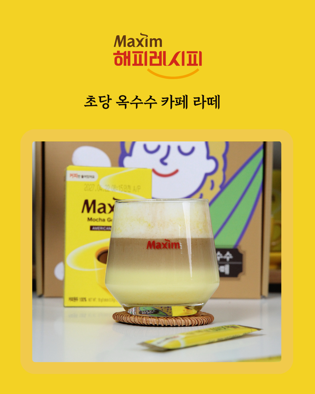 * 해시태그 : #맥심해피레시피 #홈카페 #맥심알갱이 #옥수수라떼